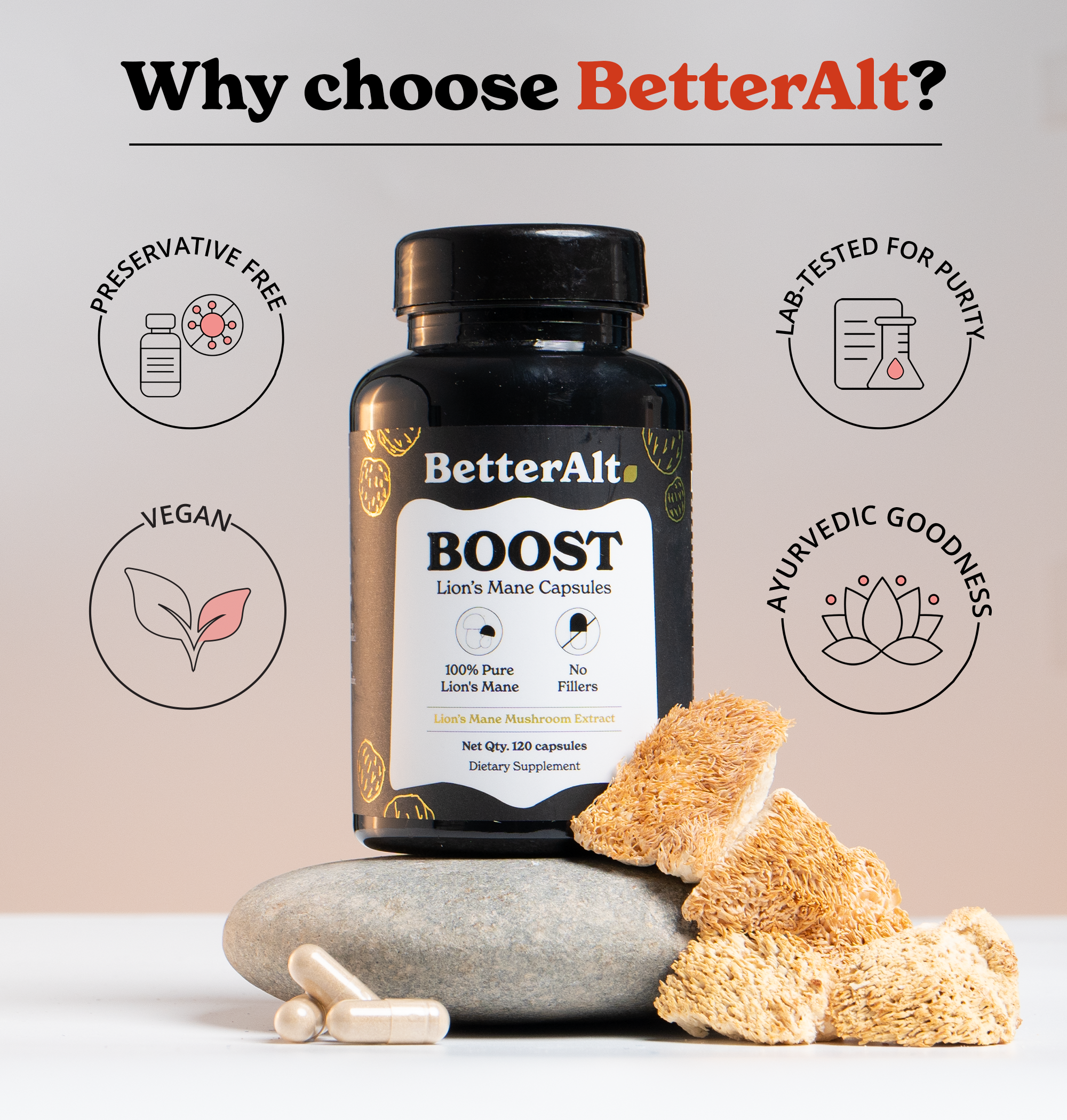 - Known for its role in cognitive enhancement, Lion's Mane also promotes long-term brain health and overall vitality.