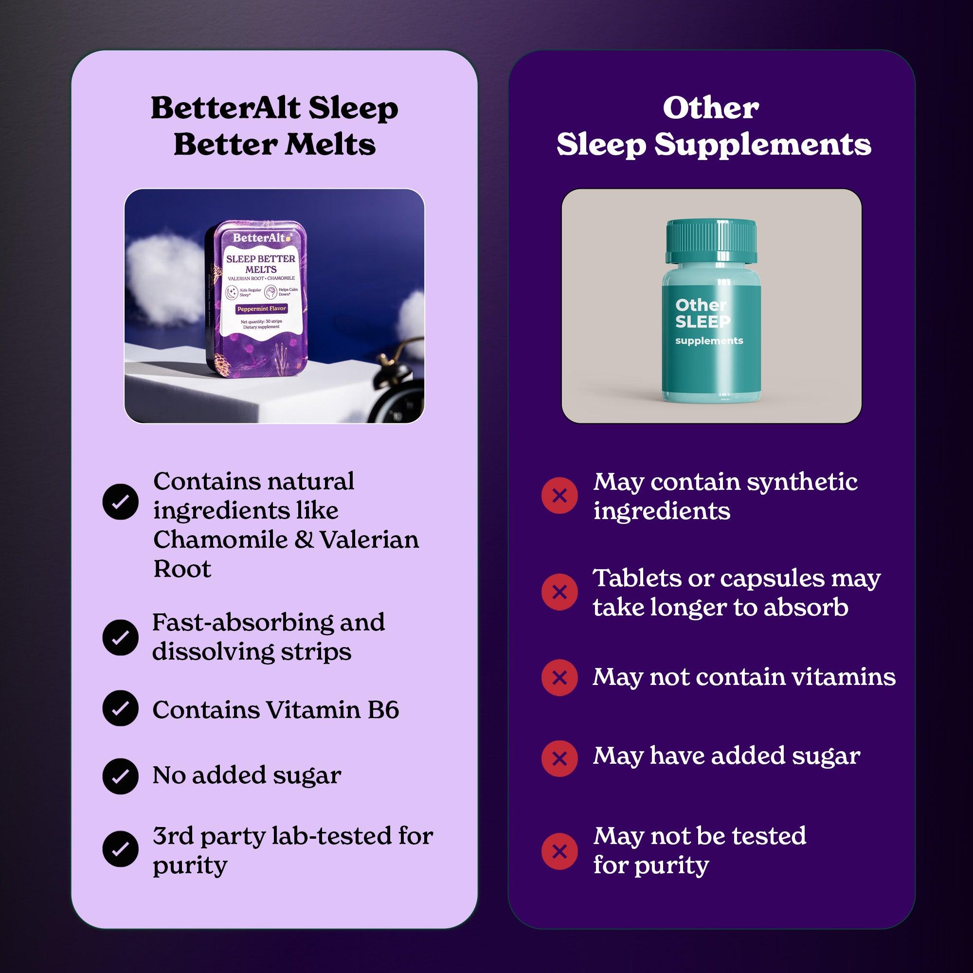 - BetterAlt Sleep Better Melts may help you unwind and drift into peaceful slumber, with fast-dissolving peppermint flavor strips that help promote bedtime relaxation.