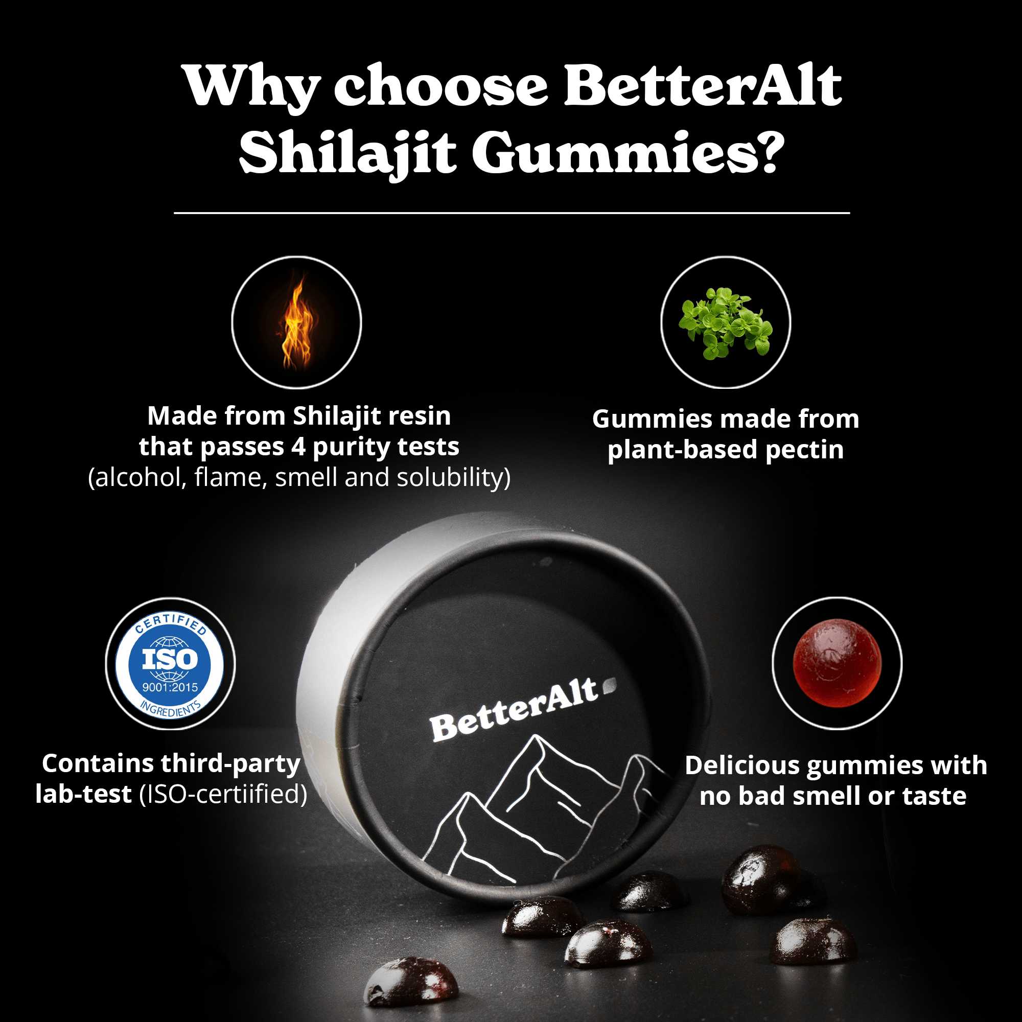 Shilajit Gummies: Chew 2 gummies daily, preferably with meals.