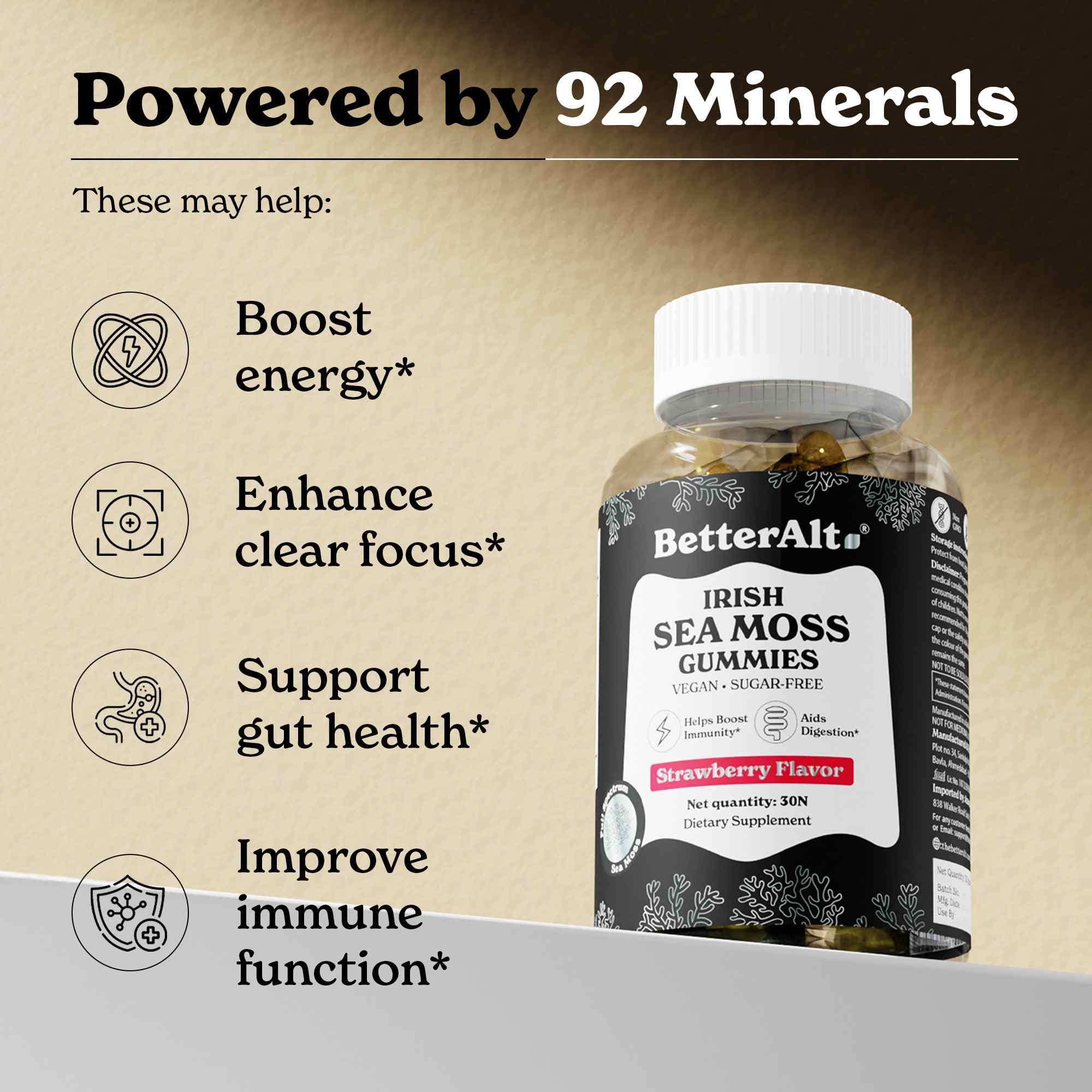 Sea Moss Gummies: Take 2 gummies daily to fortify your immunity and energy.
