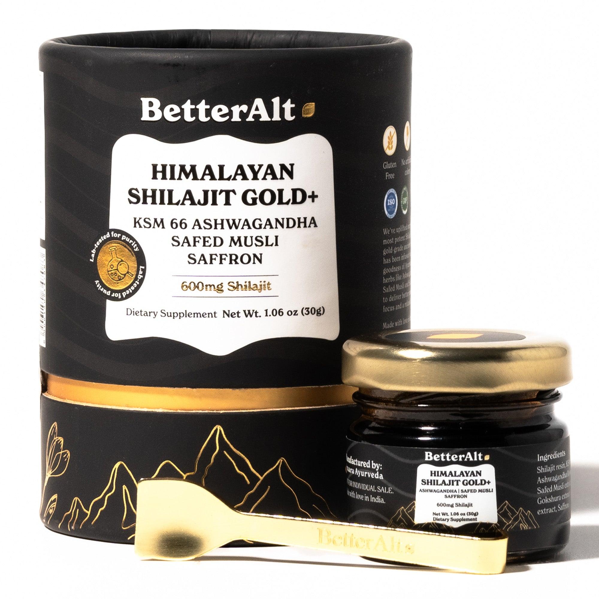 GOLD+ Resin is an upgraded version of Shilajit Resin, with powerful ingredients such as Shilajit, KSM-66 Ashwagandha, Safed Musli, Gokshura, Kaunch and Saffron.