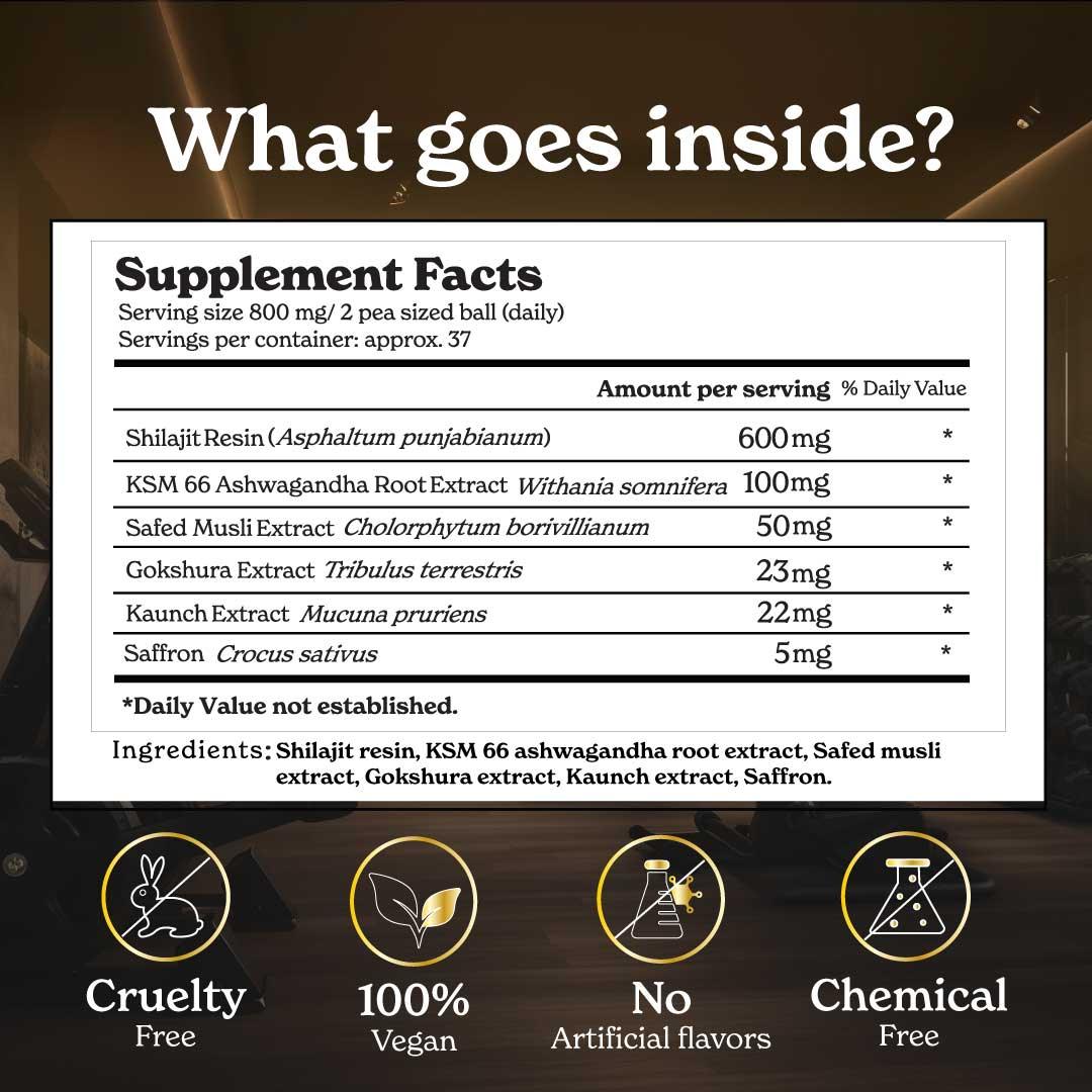 Each serving contains 600 mg of pure Shilajit.