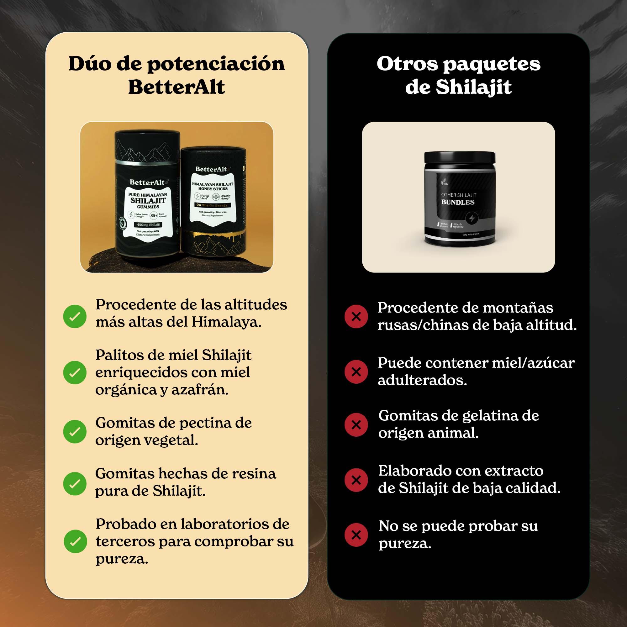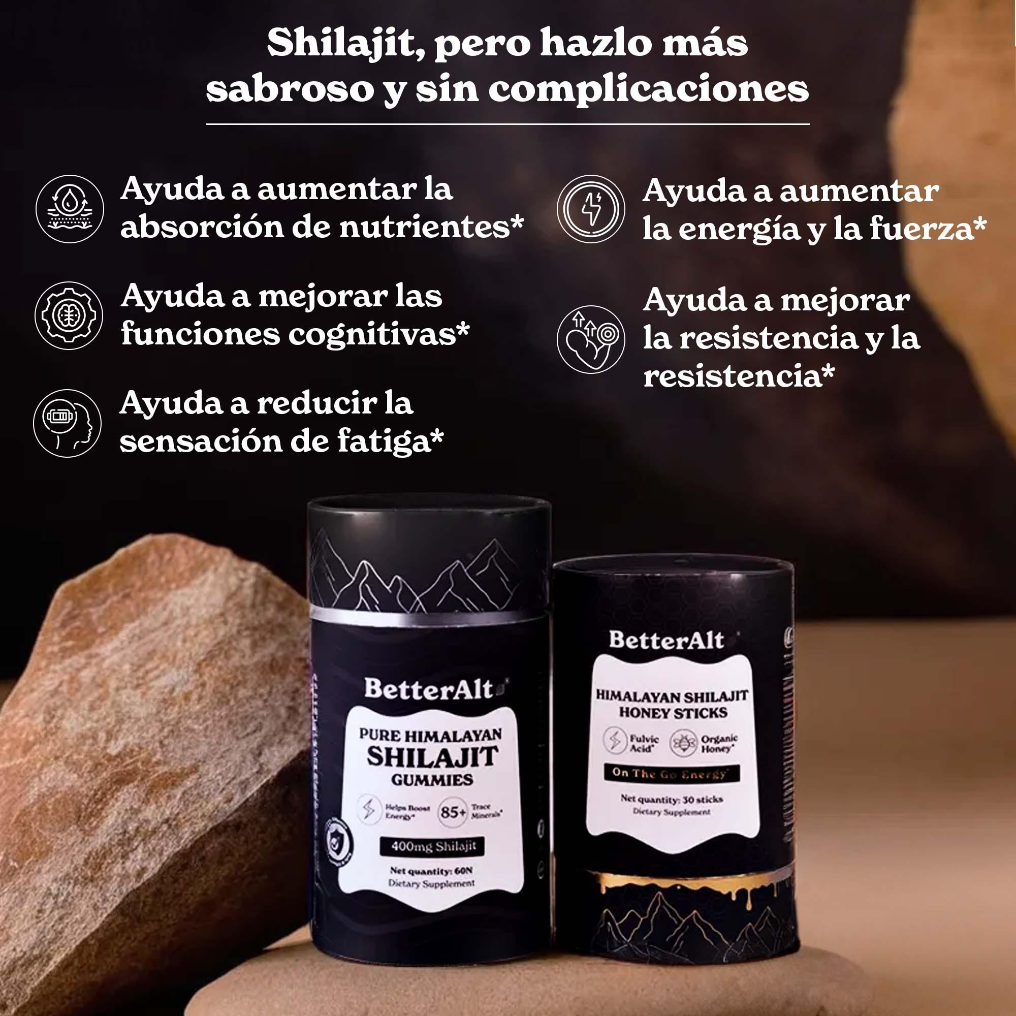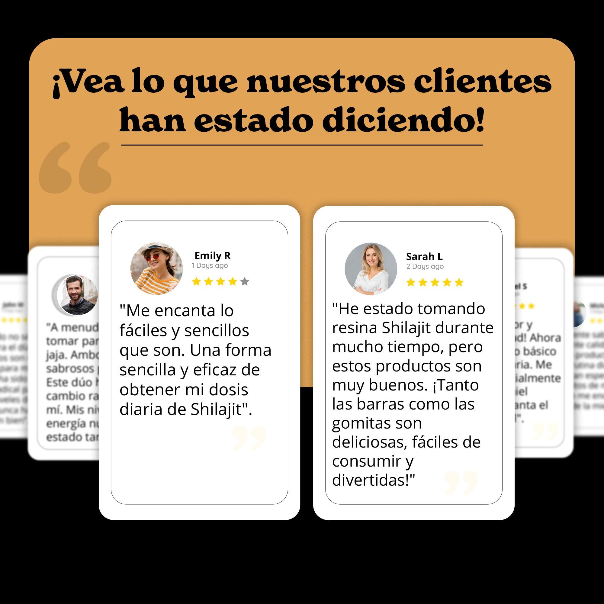 ¡Estos no son solo palitos de miel comunes! Combinan los ricos beneficios del Shilajit con la dulzura de la miel orgánica y el azafrán de Cachemira, lo que los convierte en un delicioso y nutritivo manjar.